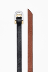 • Two-tone gold/silver hardware • Bi-color leather combination• Adjustable size • Dimensions: 0.8W x 43L