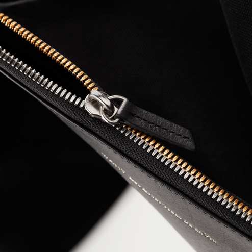 Unity through contrast, a core WANT Les Essentiels de la Vie ideal, is quite literally represented by the brand’s signature silver and gold zip closure. With one row of teeth in gold and the other in silver, this YKK high-end Excella® zipper is the world’s finest. Lightweight and smooth, symmetrical teeth allow the slider to move in both directions, while its polished plated metal finish creates a beautiful shine. Made in Japan, this unique zipper is a subtle amalgam of the opposites celebrated by WANT Les Essentiels de la Vie: masculine and feminine, uptown and downtown, classic and modern, to name but a few.