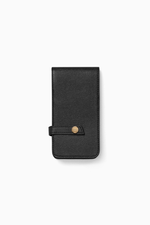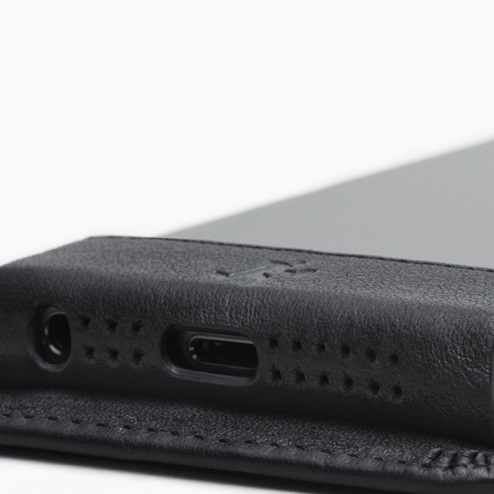 Custom-designed to accommodate your iPhone, this all-leather case brilliantly cradles and protects your phone. A flip-open case reveals the camera and the touchscreen; the side and back are wrapped in a resilient layer of leather, leaving access to the microphone and headphone inputs. Providing even more functionality, the Newbery features two pockets for your ID or credit cards—the ideal union of chic and smart design for life on the go.