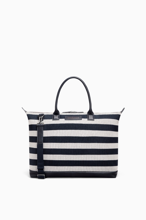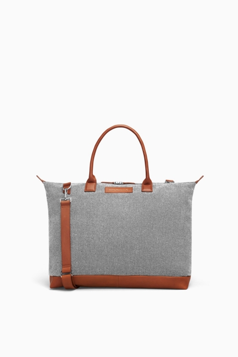 This sophisticated tote, made of a weather-resistant wool with Italian leather trim, is sleek enough for daily use and yet offers enough room to accommodate an overnight getaway. The Lindbergh sits naturally across the body for comfort on the train or in the terminal, while long straps rest easily on the shoulder. A two-way zipper provides easy access to main pocket.